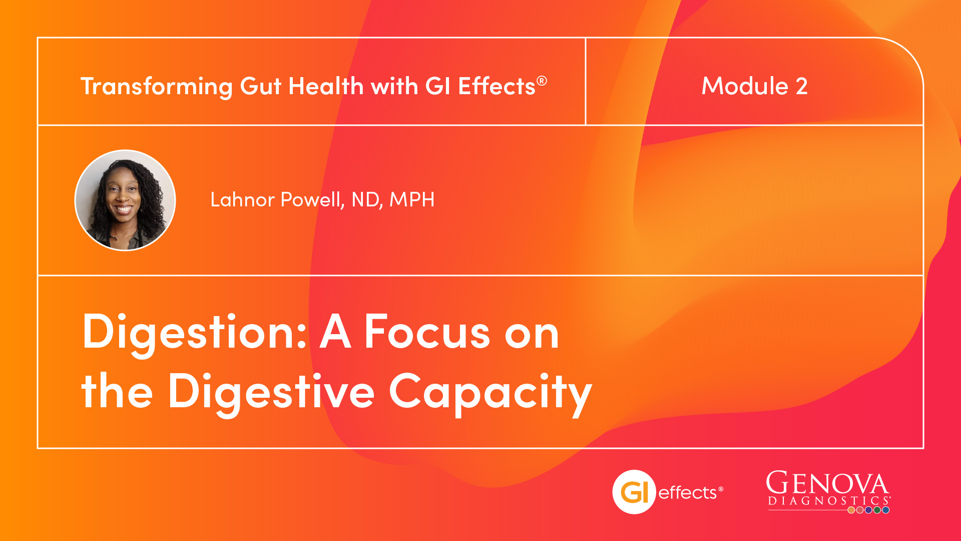 Join Dr. Lahnor Powell as she does a deep dive into the physiology of digestion and absorption. Discover how the GI Effects Stool Profile assesses digestive capacity. Focusing on the Digestion and Absorption section of the test, Dr. Powell will decode each biomarker's significance and clinical implications. She offers her expert insights into using GI Effects results to develop therapeutic strategies and treatment protocols to help your patients feel their best.