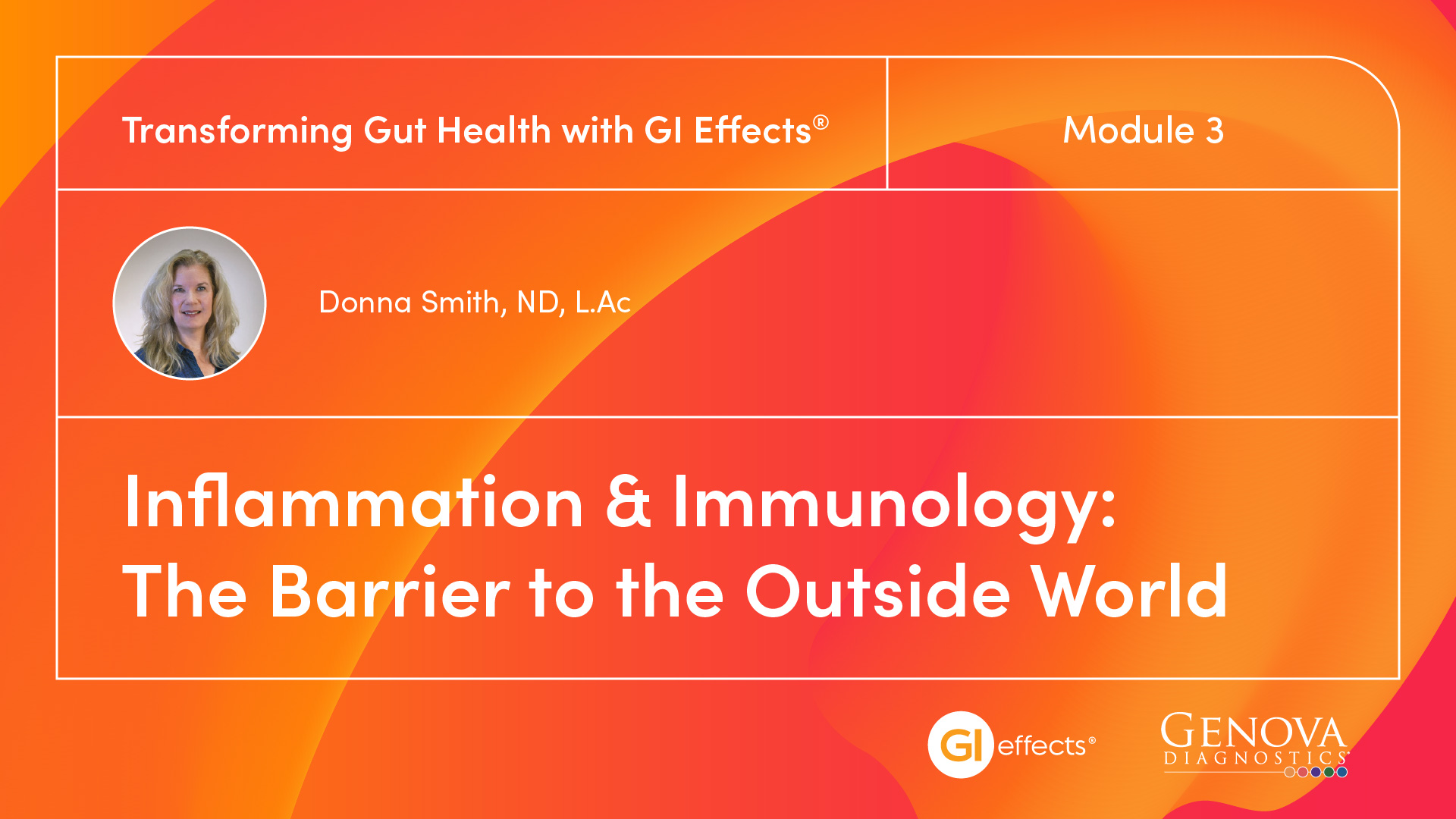 In this module, Dr. Donna Smith discusses the red flags of gut inflammation and how they are assessed on the GI Effects Stool Profile. She focuses on the vital biomarkers Calprotectin and Eosinophil Protein X. Dr. Smith also offers a great refresher course on the body's immune response, the role of immunoglobulins, and the difference between food allergy and food sensitivities. Using several case studies, these concepts are all tied together as she uses test results to show you how to take the next steps.